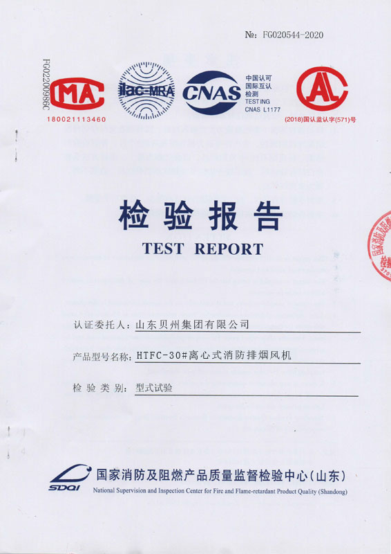 • 離心排煙風(fēng)機(jī)檢驗(yàn)報(bào)告